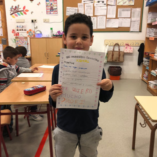 Los alumnos de primero realizaron dibujos de sus maestros favoritos del cole e hicieron tarjetas de felicitación.